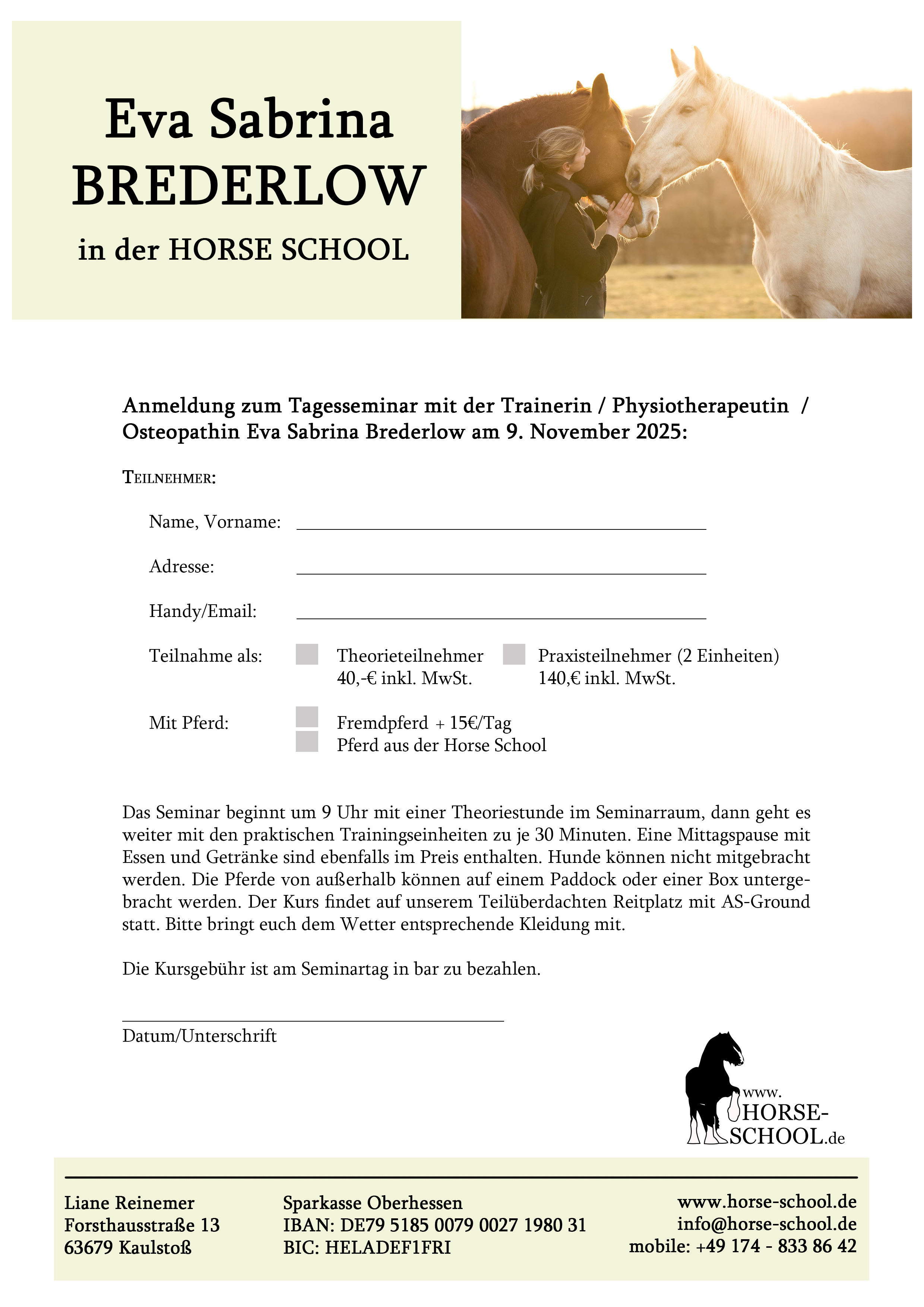 Sie möchten auch bei sich am Stall ein Seminar organisieren? Rufen Sie mich gerne an: 01748338642